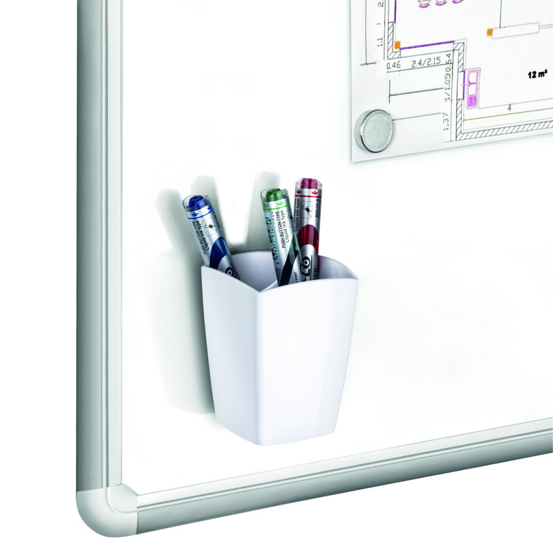 Keep markers and whiteboard accessories within easy reach during lessons, meetings and presentations with this CEP Pen Cup. It securely adheres to magnetic whiteboards and surfaces with two compartments to hold several pens at once. It is made from shock resistant and recyclable polystyrene with a high gloss finish.