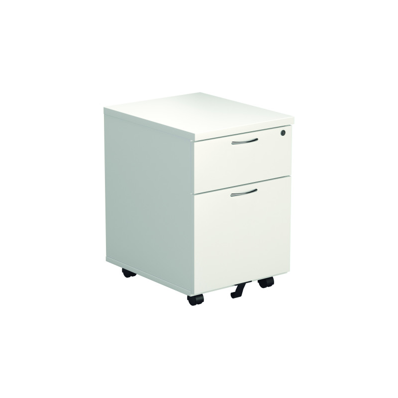 Designed to complement both Jemini and Arista desking, this 2 Drawer Mobile Pedestal can be used under desks or independently. The pedestal features 1 shallow box drawer for stationery, books or other accessories and 1 filing drawer suitable for foolscap-sized folders. Mounted on four swivel castors, it can be manoeuvred easily for flexible use. Finished in an eye-catching white, the pedestal measures W434 x D580 x H595mm.